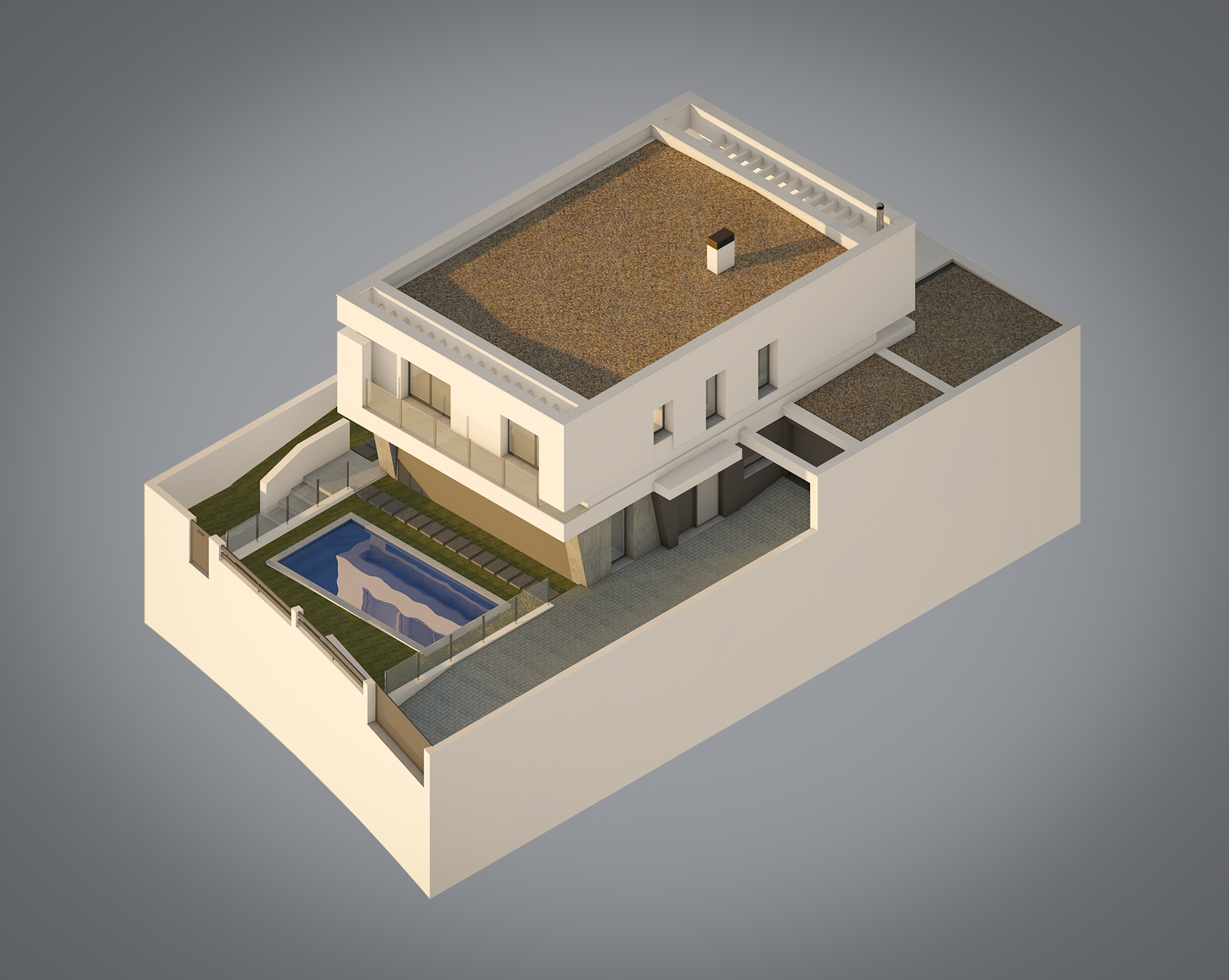 Construção de Moradia Unifamiliar, Garagem, Piscina e Muros